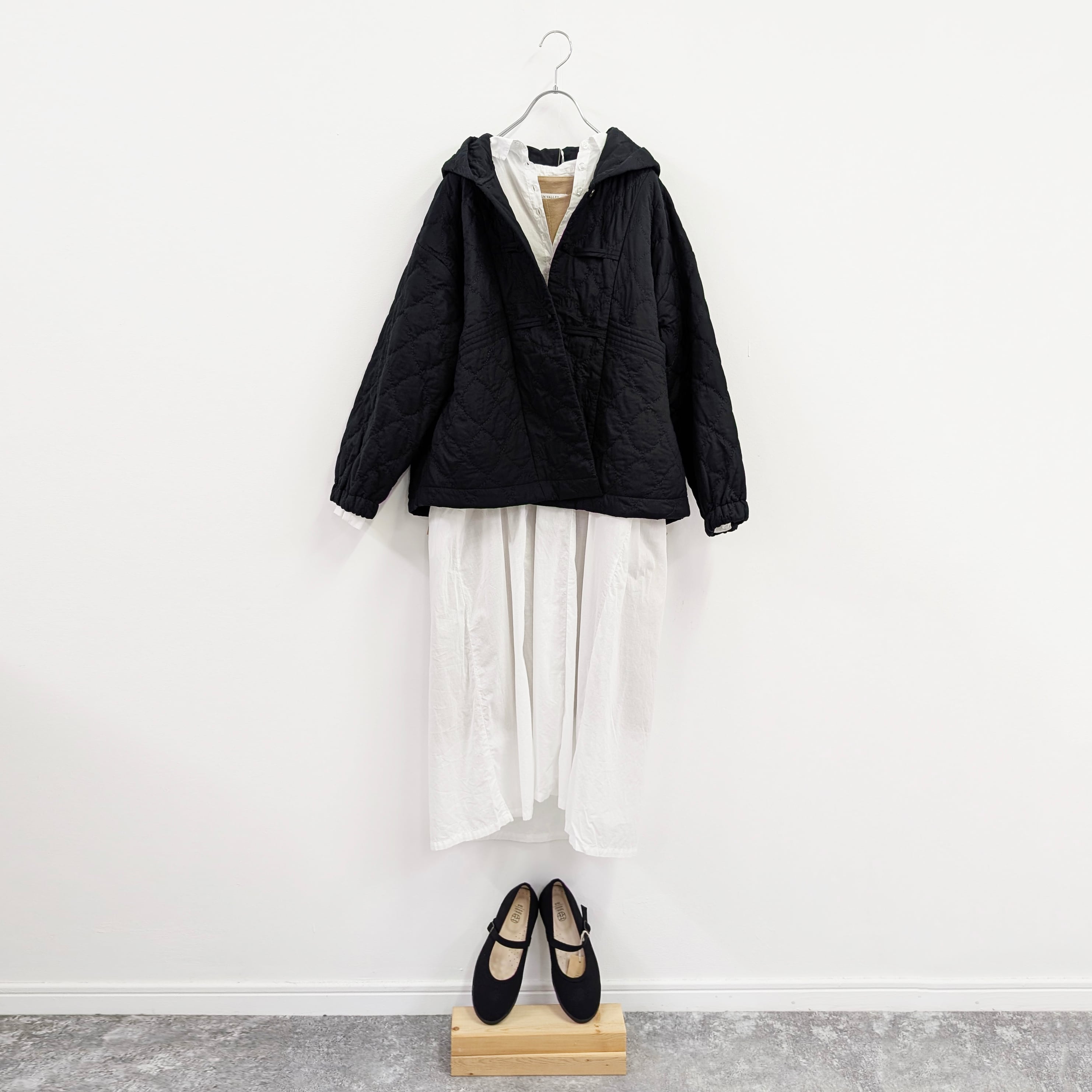 中綿刺繍キルティングフードJKは中綿が薄めに入りさっと羽織りやすく