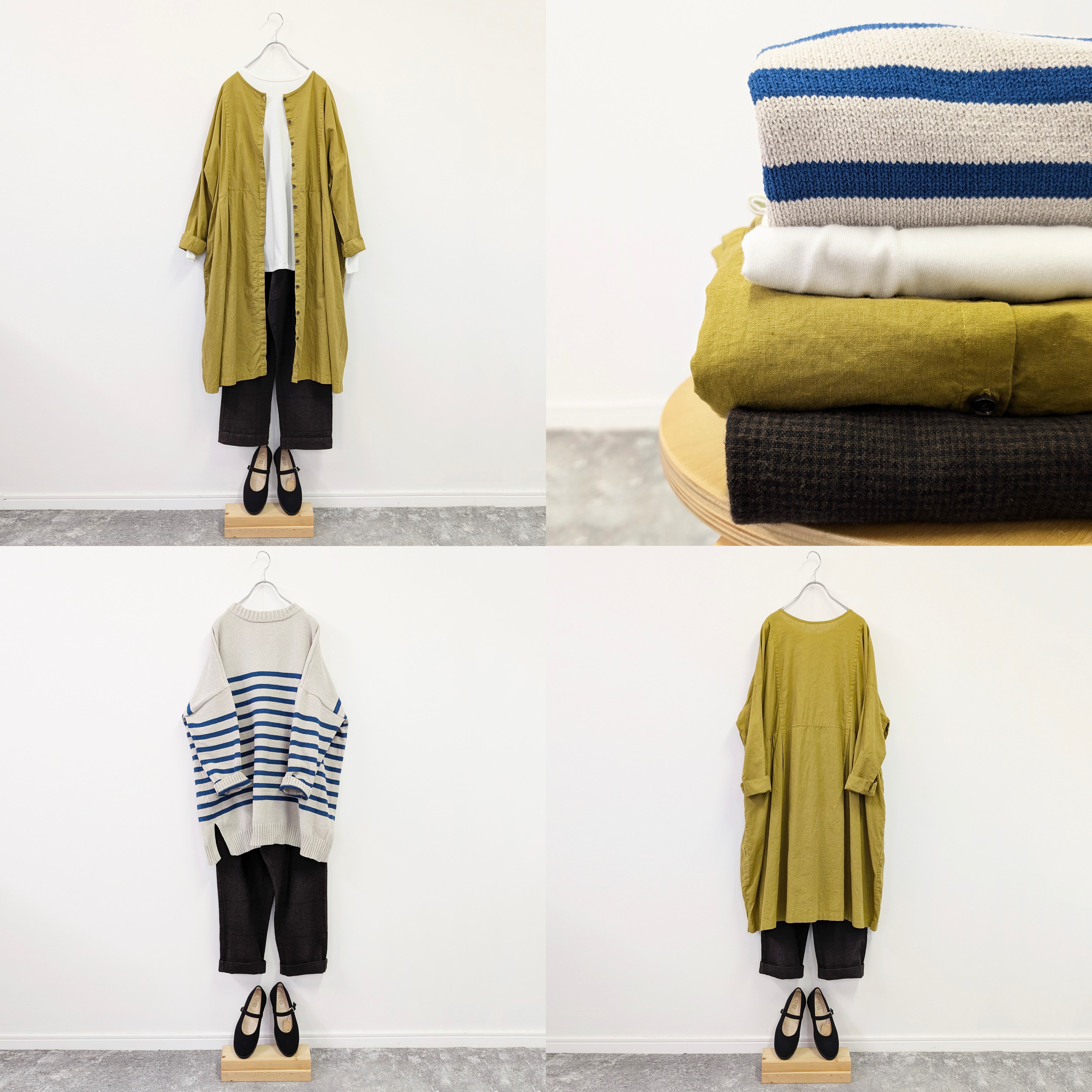 ワンピースは前後で着用していただけ着回しアレンジしやすい一枚です。
