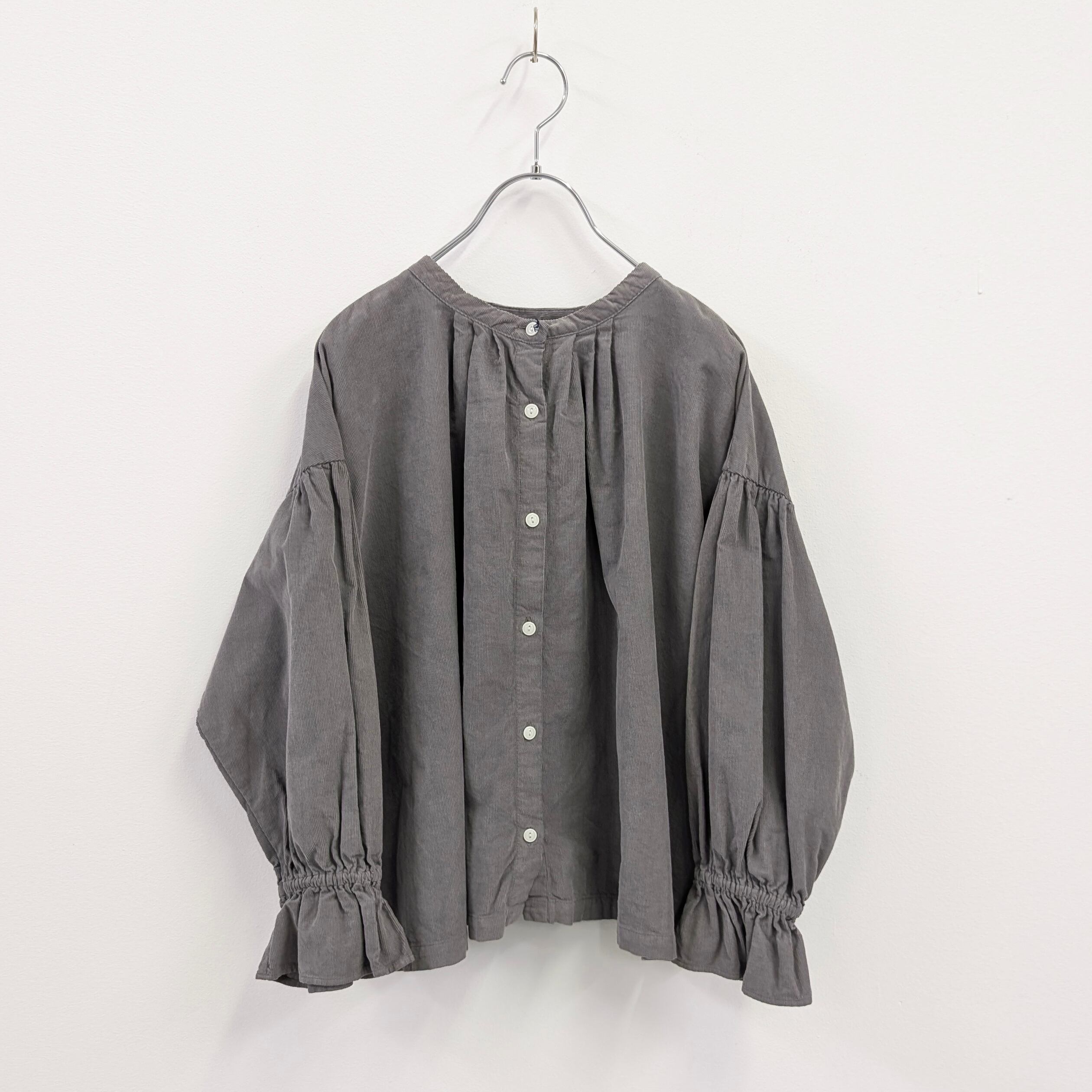 前後で着用していただけるコーデュロイプルオーバーは袖口にゴムが入ったふんわりシルエット。